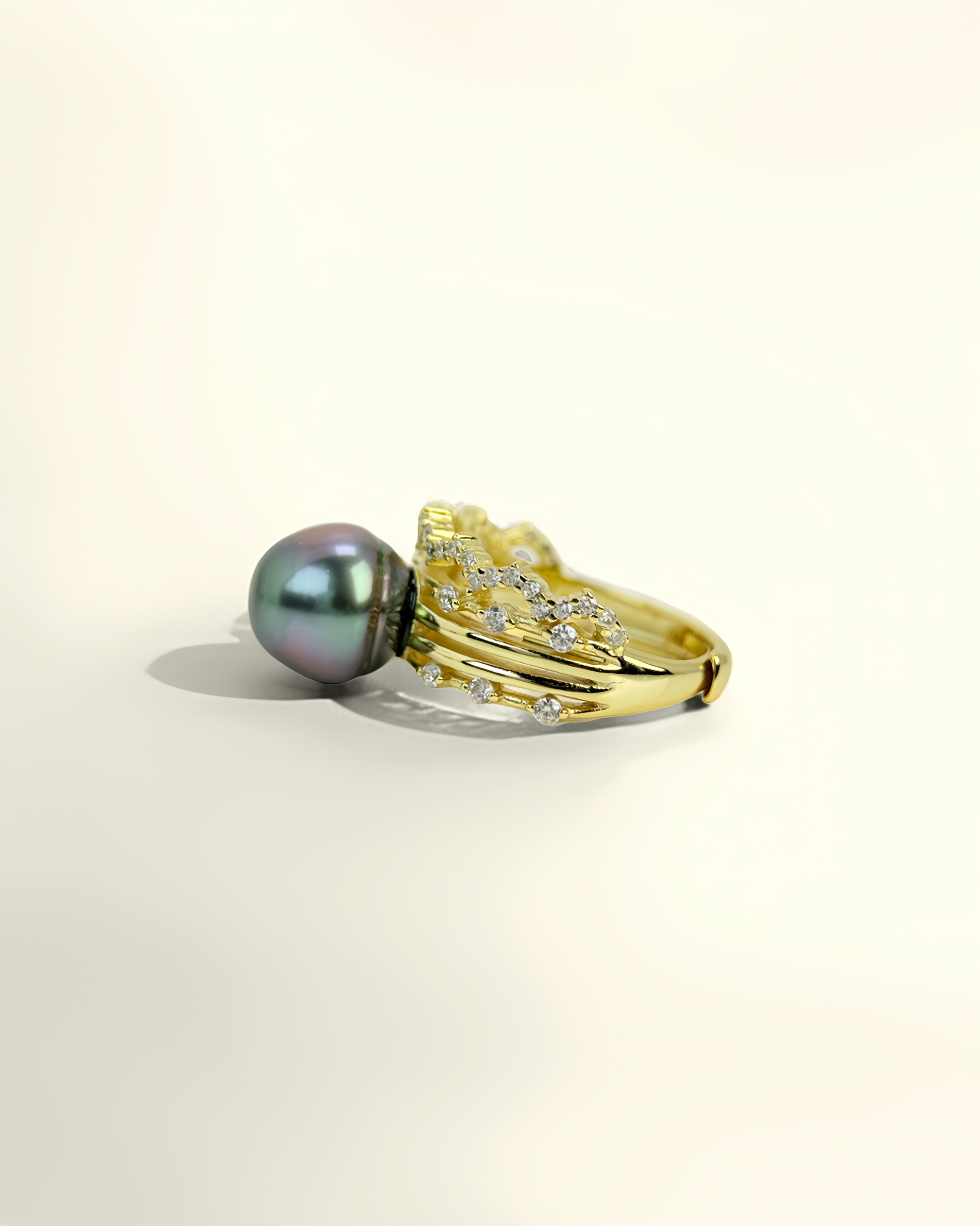 Bathed in the warmth of first light, Aurea captures the quiet grandeur of morning — where gold meets the glow of a Tahitian pearl.