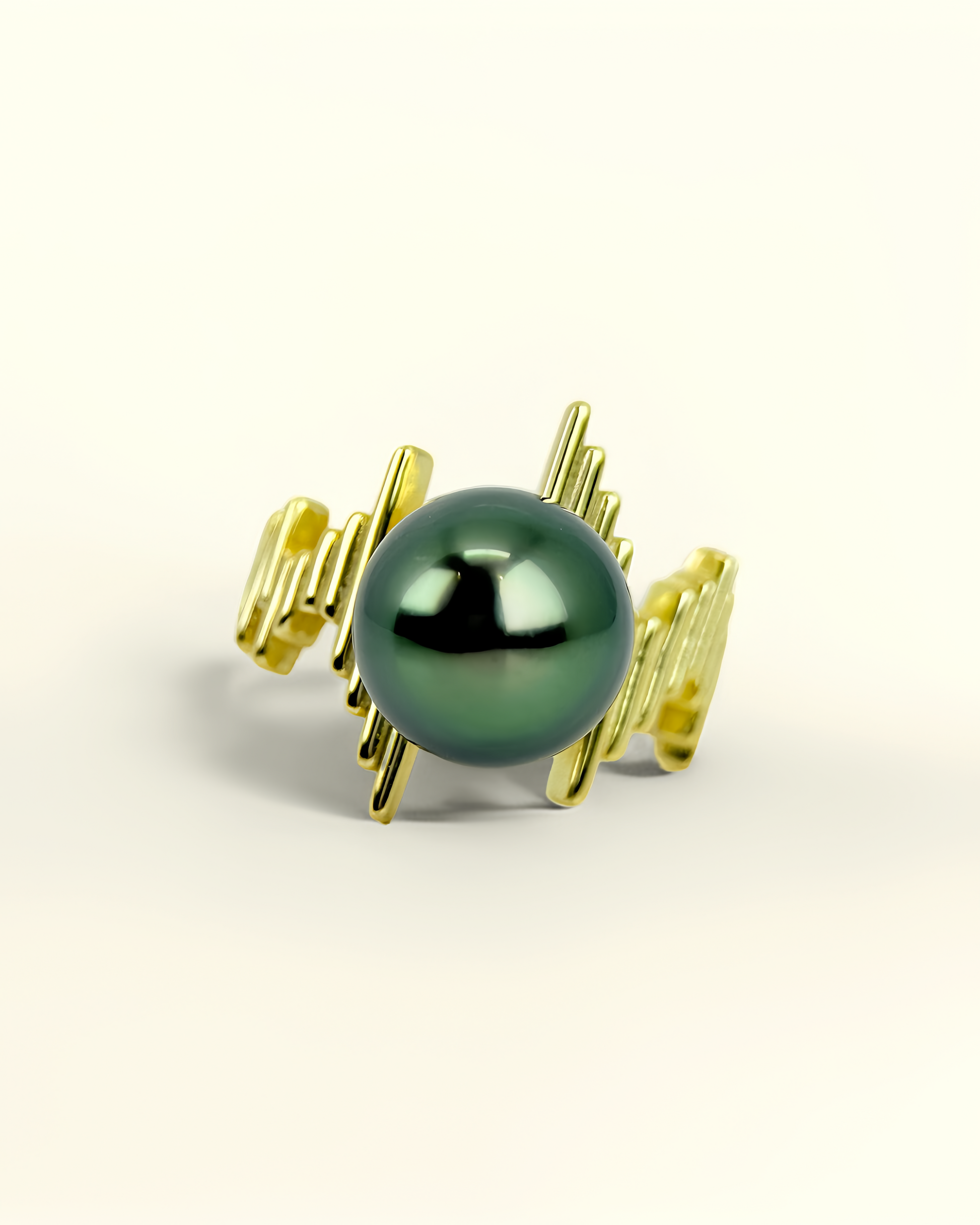 At its heart lies a 10.6mm natural Tahitian pearl, glowing with vivid green overtones — a rare spark of oceanic light.
