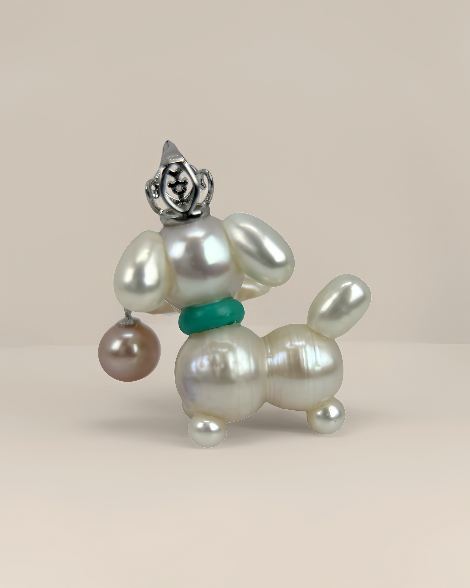 Luma — Pearl Pup | Baroque Dog Charm with Pink Drop