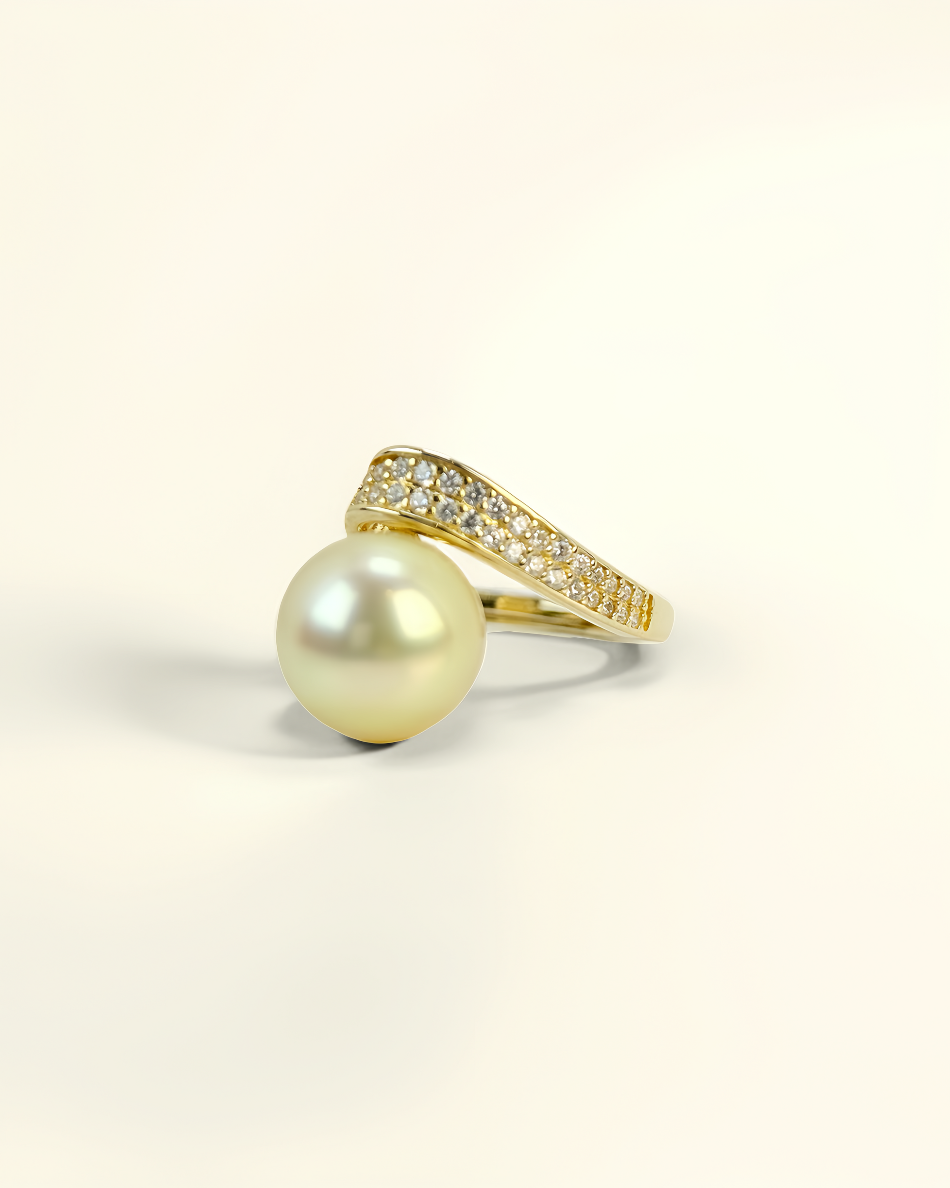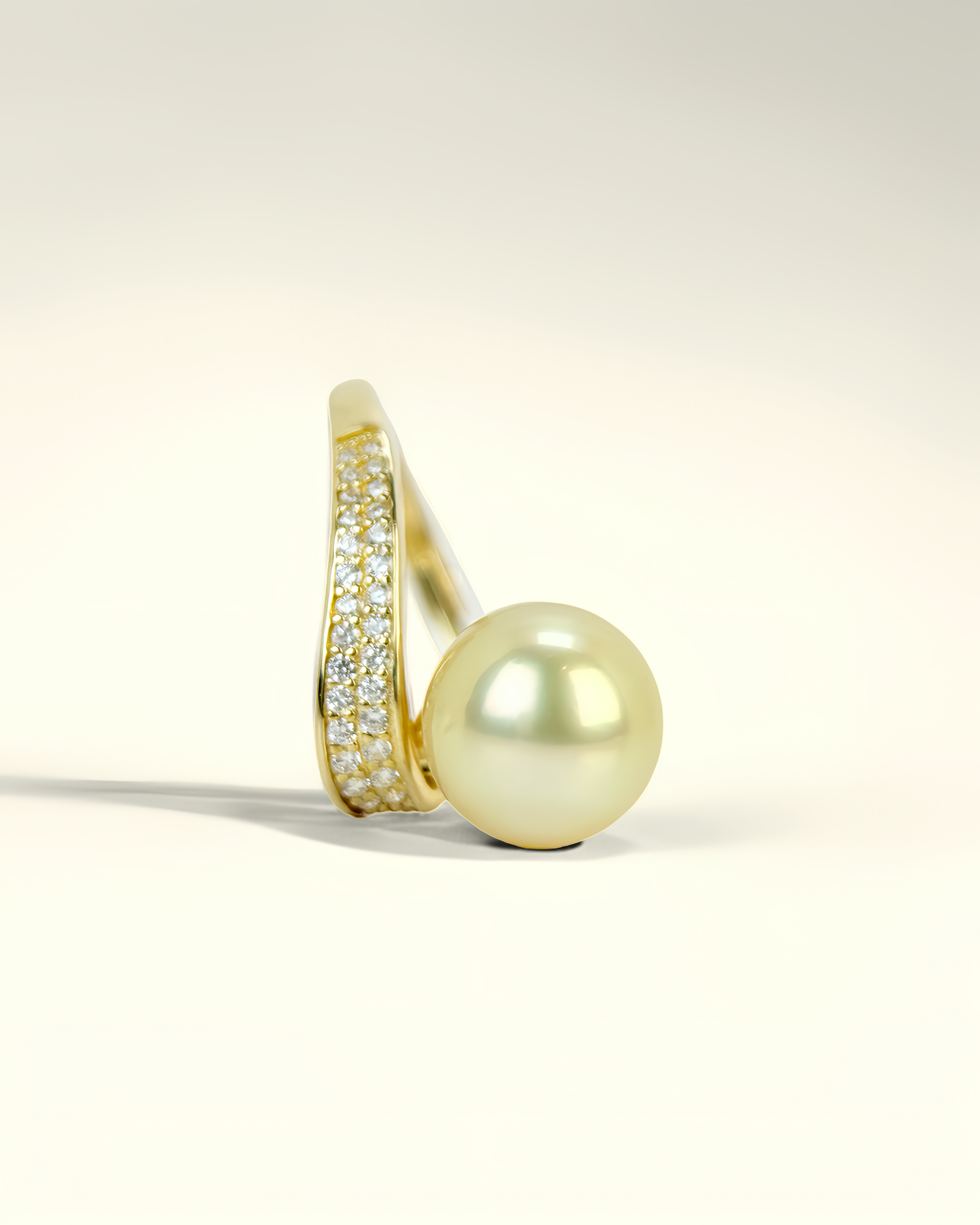 A 10.1mm South Sea golden pearl rests within a flowing arc of pavé gemstones,