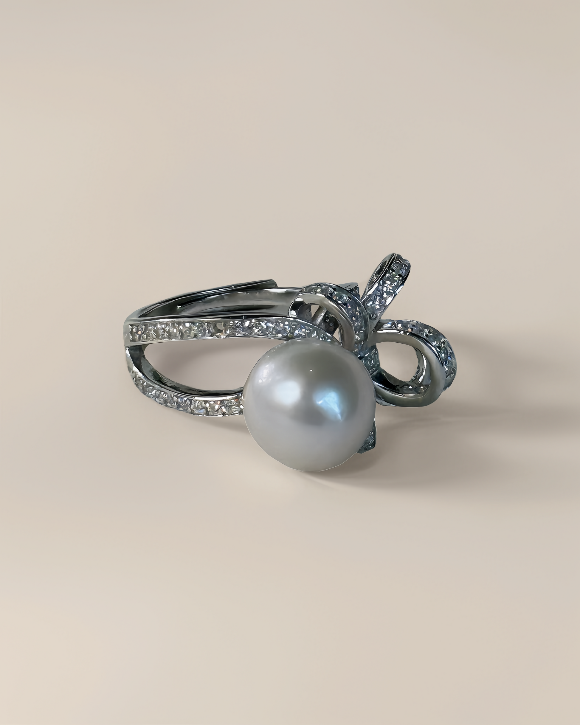 Crafted from 925 sterling silver plated with 18K white gold, and finished with a fully adjustable band, Odette is made to embrace your hand with elegance and ease.