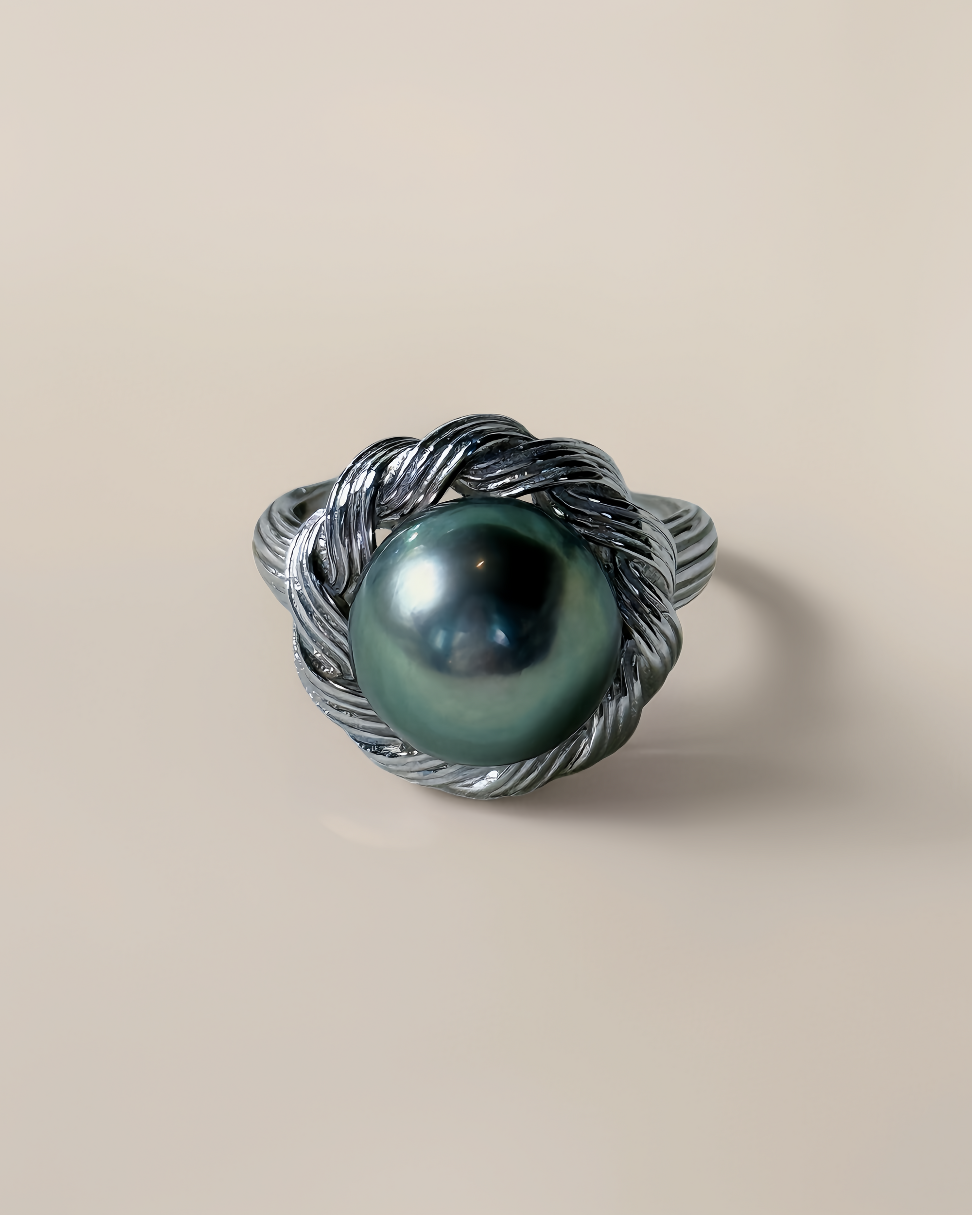Sylvaine | Floral Ring with Green Tahitian Pearl
